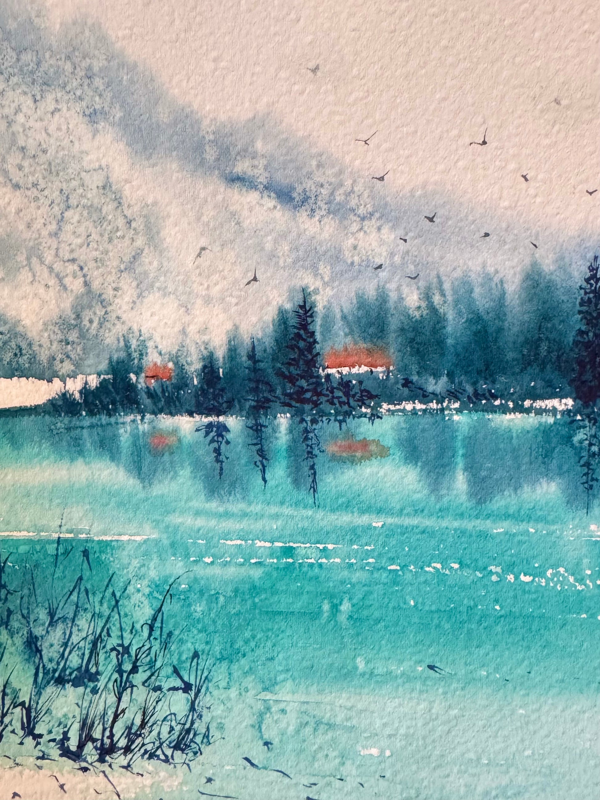 Winter in watercolor — hushed, crystalline, breathless. The purity of stillness held in frost.